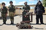 Церемония крепления к боевому знамени ордена Суворова, врученного 11-й отдельной гвардейской инженерной Кингисеппской Краснознамённой ордена Александра Невского бригаде Южного военного округа, дислоцированной в Ростовской области. Церемонию провел начальник инженерных войск Вооруженных Сил России генерал-лейтенант Юрий Ставицкий. Жанровая фотография. Военнослужащие во время демонстрационного выступления.
