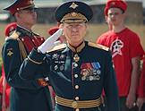 Церемония крепления к боевому знамени ордена Суворова, врученного 11-й отдельной гвардейской инженерной Кингисеппской Краснознамённой ордена Александра Невского бригаде Южного военного округа, дислоцированной в Ростовской области. Начальник инженерных войск Вооруженных Сил России генерал-лейтенант Юрий Ставицкий во время церемонии.