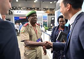 Международная выставка вертолетной индустрии HeliRussia в Международном выставочном центре "Крокус Экспо". Иностранные посетители на выставке.