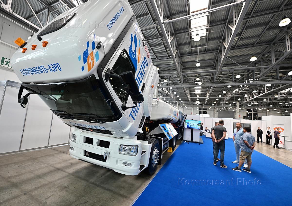 Международная выставка вертолетной индустрии HeliRussia в Международном выставочном центре "Крокус Экспо". Бензовоз компании "Газпромнефть".