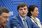 Встреча министров образования стран БРИКС в ИТ-парке им. Башира Рамеева. Министр науки и высшего образования России Валерий Фальков (слева) и министр просвещения России Сергей Кравцов (в центре) во время встречи.