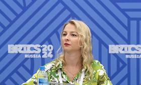 Встреча министров образования стран БРИКС в ИТ-парке им. Башира Рамеева. Директор Департамента международного сотрудничества министерства науки и высшего образования России Ксения Тринченко во время встречи.