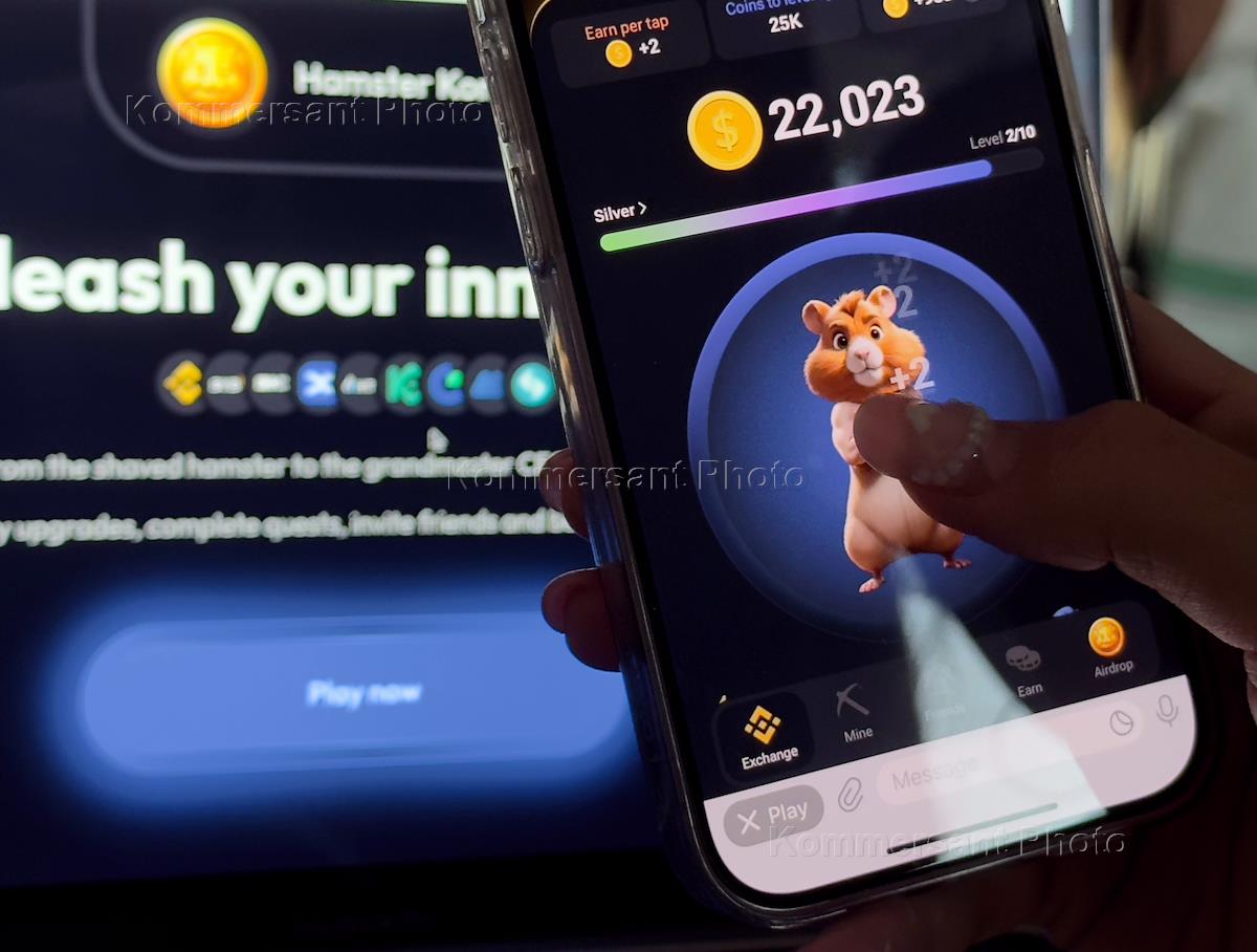 Жанровая фотография. Игра Hamster Kombat на экране смартфона.