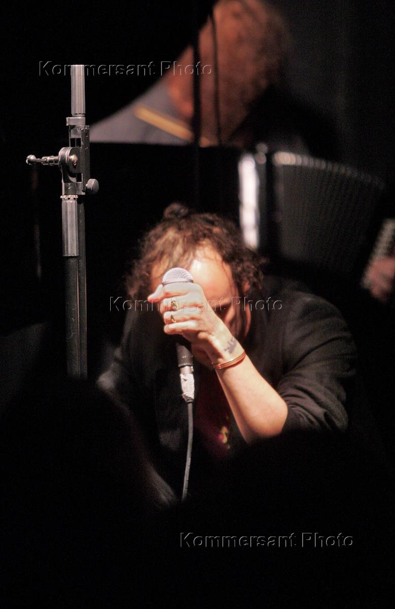 The leader of group "Current 93" David Tibet during performance at a solo concert of group in club "Ikra".