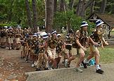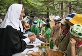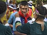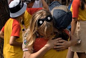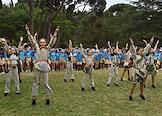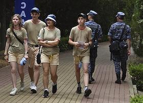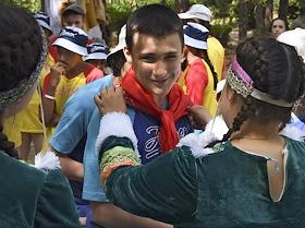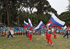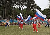 Celebrating Russia Day on the territory of the Artek International Children's Center. Genre photography. Camp pupils and Rogvardiya staff.
