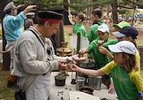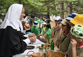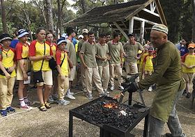Celebrating Russia Day on the territory of the Artek International Children's Center. Genre photography. Camp students during a master class on blacksmithing.
