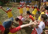 Celebrating Russia Day on the territory of the Artek International Children's Center. Genre photography. Camp students during the competition.