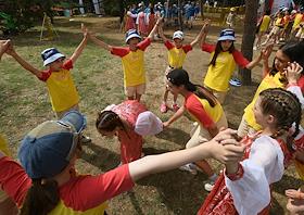 Celebrating Russia Day on the territory of the Artek International Children's Center. Genre photography. Camp students during a master class at the celebration.