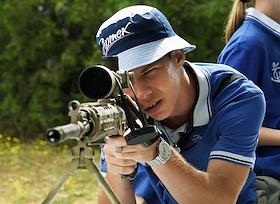Celebrating Russia Day on the territory of the Artek International Children's Center. Genre photography. Camp students during a shooting competition at the celebration.
