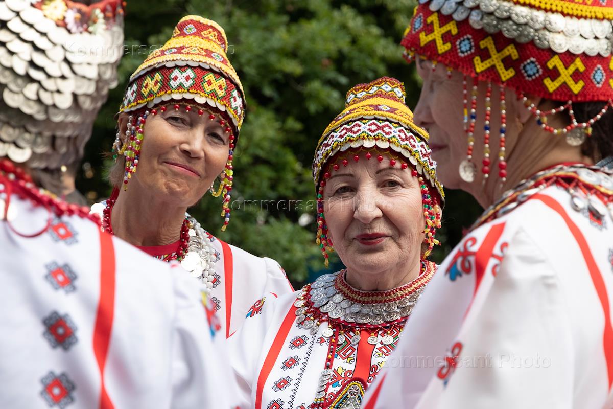 Празднования Дня России в Санкт-Петербурге. VII Санкт-Петербургский Бал национальностей в Александровском саду. Участники бала в национальных костюмах.