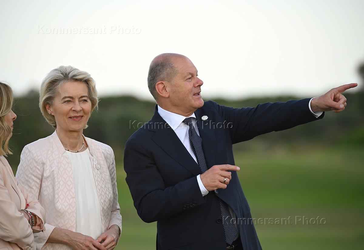 50-й cаммит "Большой семерки" (G7). Председатель Европейской комиссии Урсула фон дер Ляйен (слева) и канцлер Германии Олаф Шольц (справа) на саммите.