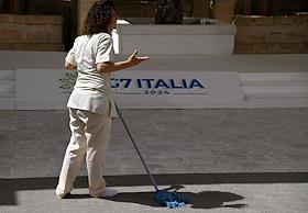 50-й cаммит "Большой семерки" (G7). Жанровая фотография. Уборщица во время работы.