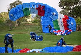 50-й cаммит "Большой семерки" (G7). Жанровая фотография. Показательные выступления парашютистов.
