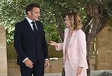 50-й cаммит "Большой семерки" (G7). Президент Франции Эммануэль Макрон (слева) и премьер-министр Италии Джорджа Мелони (справа) на саммите.
