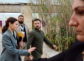 50-й cаммит "Большой семерки" (G7). Премьер-министр Италии Джорджа Мелони (справа) и президент Украины Владимир Зеленский (слева) на саммите.
