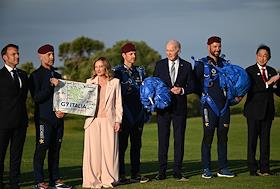 50-й cаммит "Большой семерки" (G7). Жанровая фотография. Показательные выступления парашютистов.