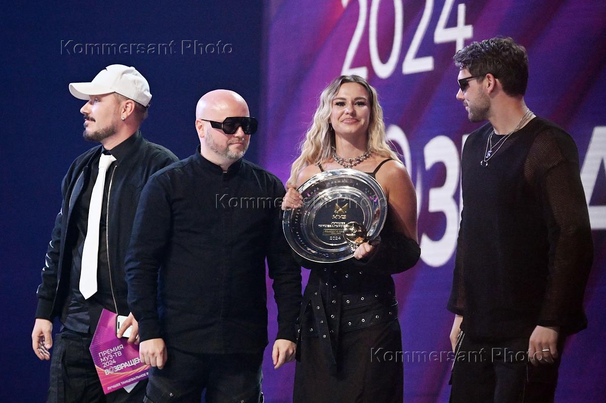 Ежегодная национальная телевизионная премия в области популярной музыки "Премия МУЗ-ТВ 2024. Возвращение" в СК "ЦСКА Арена". Певица Мари Краймбрери (в центре) во время выступления на церемонии.