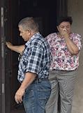 Последствия обстрела Петровского района Донецка, где погибла пожилая пара. Сестра и соседи погибших во дворе дома.