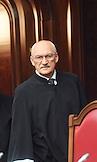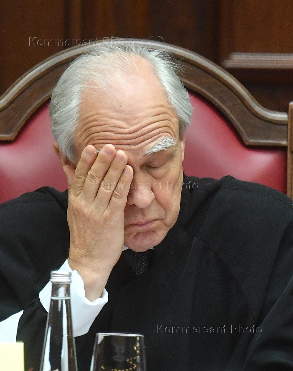 Заседание Конституционного суда России. Слушание дела о проверке конституционности положений части 4 статьи 7, абзаца первого части 1 и части 7 статьи 18 Федерального закона (ФЗ) "Об ответственном обращении с животными и о внесении изменений в отдельные законодательные акты РФ". Заместитель председателя Конституционного Суда России Сергей Маврин во время заседания.