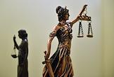 Заседание Конституционного суда России. Слушание дела о проверке конституционности положений части 4 статьи 7, абзаца первого части 1 и части 7 статьи 18 Федерального закона (ФЗ) "Об ответственном обращении с животными и о внесении изменений в отдельные законодательные акты РФ". Жанровая фотография. Скульптура Фемиды в здании суда.