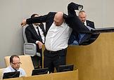 Пленарное заседание Государственной думы (ГД) России. Глава комитета по безопасности и противодействию коррупции Василий Пискарев во время заседания.