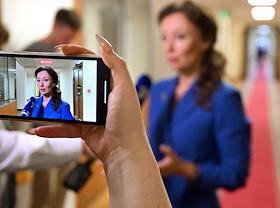 Пленарное заседание Государственной думы (ГД) России. Заместитель председателя ГД России Анна Кузнецова во время общения с представителями СМИ.