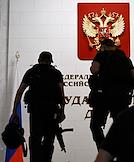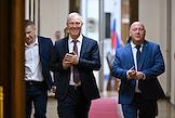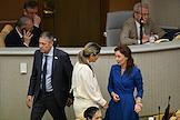 Пленарное заседание Государственной думы (ГД) России. Слева направо: губернатор Херсонской области Владимир Сальдо, полномочный представитель президента России в ГД России Гарри Минх и руководитель фракции "Единая Россия" в ГД России Владимир Васильев во время заседания.