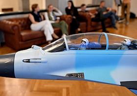 Пленарное заседание Государственной думы (ГД) России. Жанровая фотография. Модель самолета.