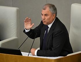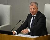 Пленарное заседание Государственной думы (ГД) России. Председатель ГД России Вячеслав Володин во время заседания.