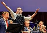 Церемония закрытия Московского джазового фестиваля в КЦ "Зарядье". Художественный руководитель Московского художественного театра (МХТ) имени А.П.Чехова, актер Константин Хабенский (в центре) во время выступления на церемонии.