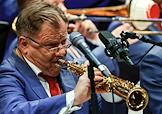 Церемония закрытия Московского джазового фестиваля в КЦ "Зарядье". Джазмен Игорь Бутман (слева) во время выступления на церемонии.