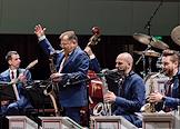 Церемония закрытия Московского джазового фестиваля в КЦ "Зарядье". Джазмен Игорь Бутман (в центре) во время выступления на церемонии.
