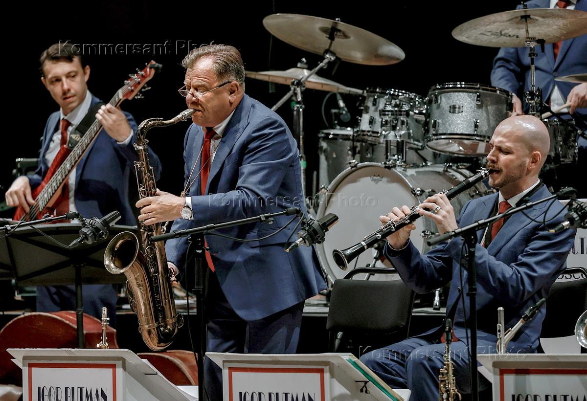 Церемония закрытия Московского джазового фестиваля в КЦ "Зарядье". Джазмен Игорь Бутман (слева) во время выступления на церемонии.