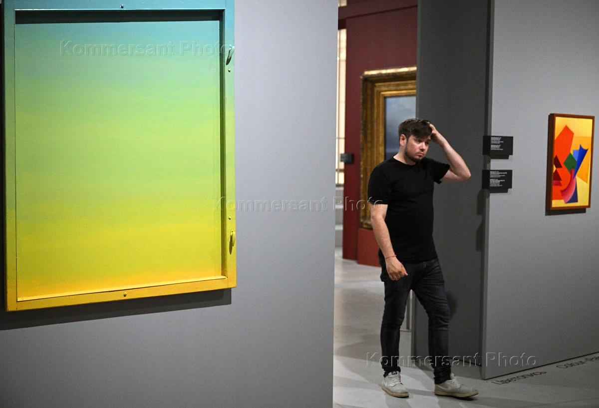 Выставка "Квадрат и пространство. От Малевича до ГЭС-2" в Доме культуры "ГЭС-2". Телеведущий Владислав Флярковский на выставке.