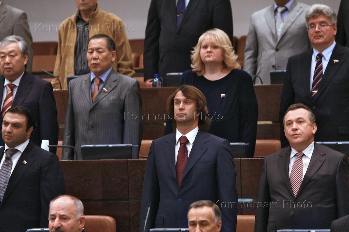 Russian Football Union (RFS) President, Representative of the St.Petersburg Government in the Russian Federation Council (SF) Vitaly Mutko , right, and Belgorod regional Representative in SF Nikolay Ryzhkov, center, attend SF session.