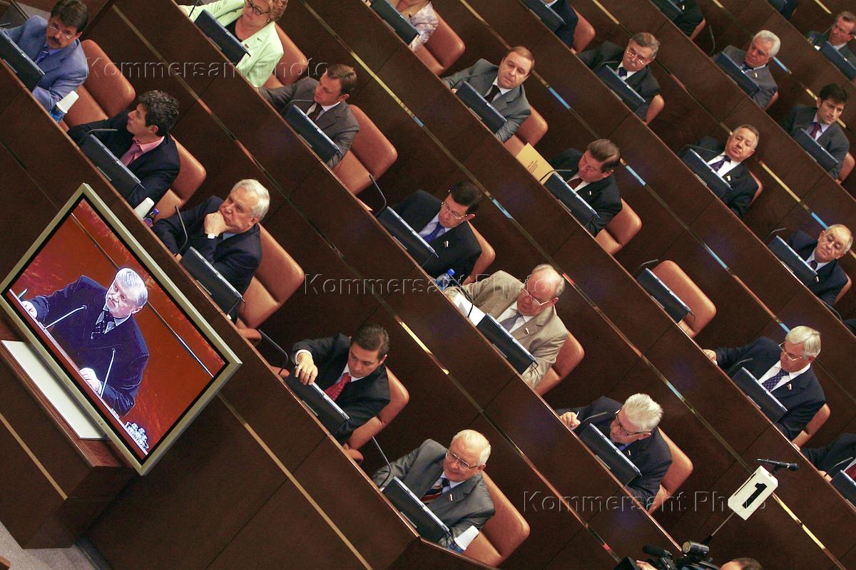 Federation Council session hall. Members of Russian Federation Council listen to appearance of Russian Federation Council Speaker Sergey Mironov.