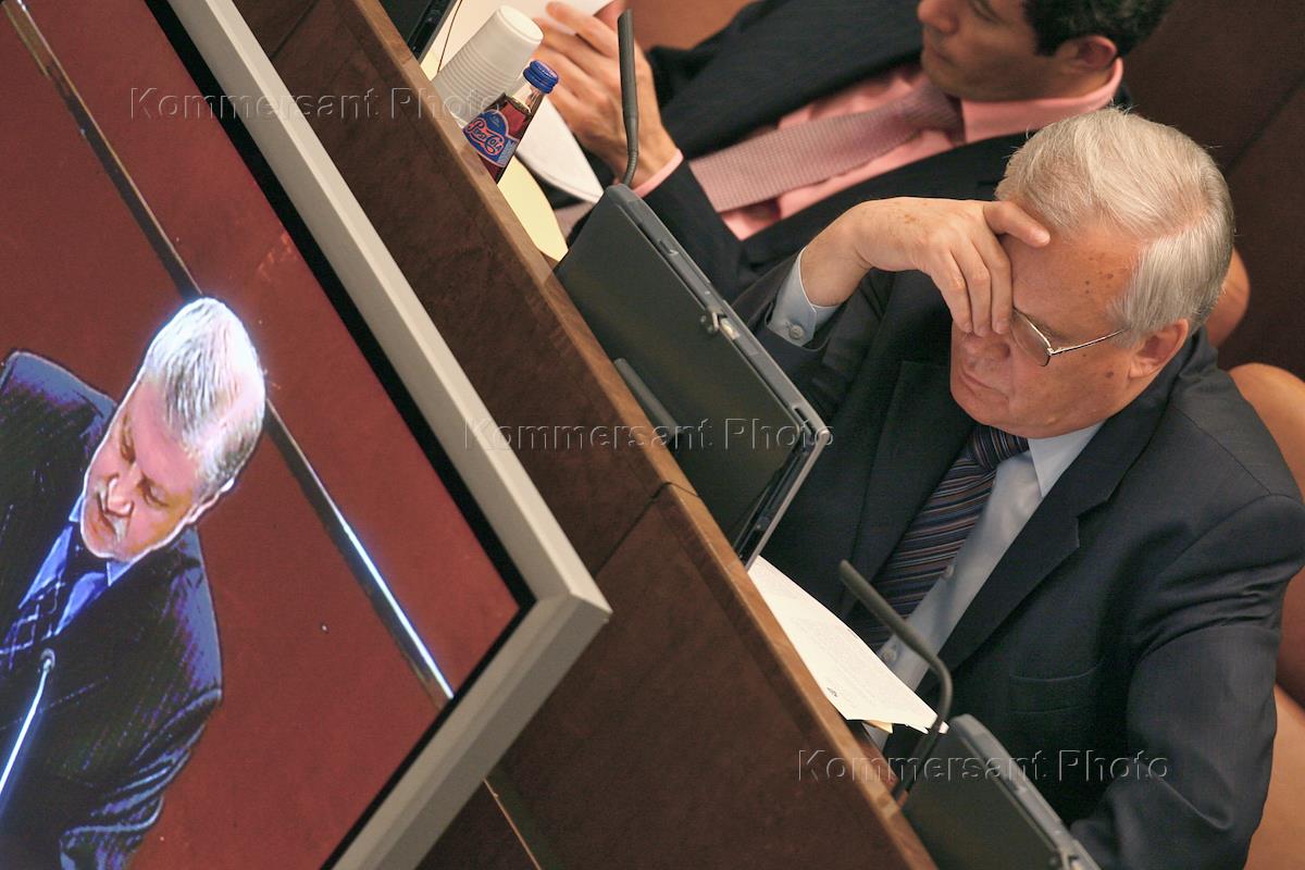 Northern Ossetia republican administration Representative in Russian Federation Council Aleksandr Dzasokhov, right, attends Russian Federation Council session.