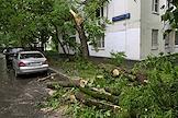 Жанровая фотография. Ливень и сильный ветер в городе. Последствия ветра в городе. Упавшее дерево у жилого дома на улице Маршала Жукова, 57.