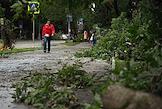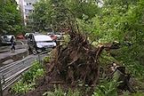 Жанровая фотография. Сильный ветер и ливень в городе. Последствия урагана. Упавшее дерево на улице Черняховского.