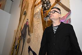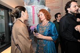 Церемония открытия выставки "Нити. Ткань современного искусства" под кураторством галеристки Нины Гомиашвили в фонде Ruarts. Художница, дизайнер аксессуаров Лана Морозова на церемонии.