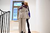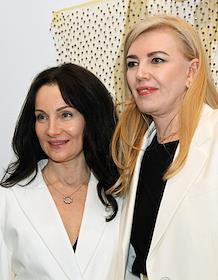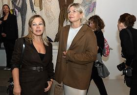 Церемония открытия выставки "Нити. Ткань современного искусства" под кураторством галеристки Нины Гомиашвили в фонде Ruarts. Куратор выставки Нина Гомиашвили (слева) и совладелица детского бутика Bonpoint Анна Андронова (справа) на церемонии.