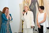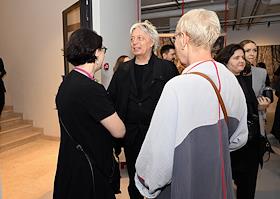 Церемония открытия выставки "Нити. Ткань современного искусства" под кураторством галеристки Нины Гомиашвили в фонде Ruarts. Куратор выставки Нина Гомиашвили (в центре) на церемонии.