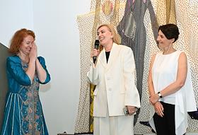 Церемония открытия выставки "Нити. Ткань современного искусства" под кураторством галеристки Нины Гомиашвили в фонде Ruarts. Супруга художественного руководителя МХАТ имени Горького Ида Кехман (в центре) на церемонии.