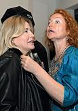 Церемония открытия выставки "Нити. Ткань современного искусства" под кураторством галеристки Нины Гомиашвили в фонде Ruarts. Куратор выставки Нина Гомиашвили (справа) и телеведущая Татьяна Арно (слева) на церемонии.