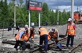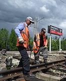 Пресс-тур по Байкало-Амурской магистрали (БАМ). Виды города Новый Ургал. Жанровая фотография. Рабочие во время ремонта железнодорожный путей.