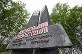 Пресс-тур по Байкало-Амурской магистрали (БАМ). Виды города Новый Ургал. Жанровая фотография. Стела к 10-летию города "Построен коллективом строителей Украины".