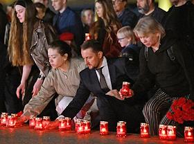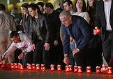 Всероссийская мемориальная акция "Свеча памяти", посвященная 83-й годовщине начала Великой Отечественной войны, на площади перед Музеем Победы. Заместитель председателя Государственной думы России Сергей Неверов (справа) во время акции.