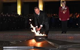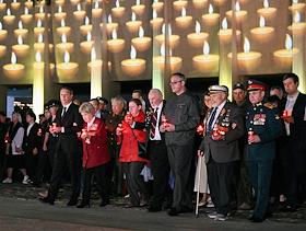 Всероссийская мемориальная акция "Свеча памяти", посвященная 83-й годовщине начала Великой Отечественной войны, на площади перед Музеем Победы. Заместитель председателя Государственной думы России Сергей Неверов (справа) во время акции.