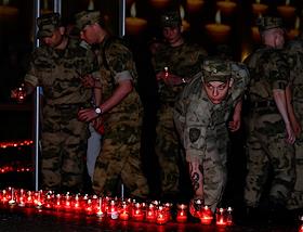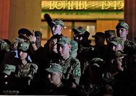 Всероссийская мемориальная акция "Свеча памяти", посвященная 83-й годовщине начала Великой Отечественной войны, на площади перед Музеем Победы. Военнослужащие во время акции.