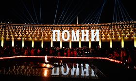 Всероссийская мемориальная акция "Свеча памяти", посвященная 83-й годовщине начала Великой Отечественной войны, на площади перед Музеем Победы. Инсталляция из 1418 виртуальных свечей, символизирующих количество дней, в течение которых длилась война, на фасаде здания Музея Победы.